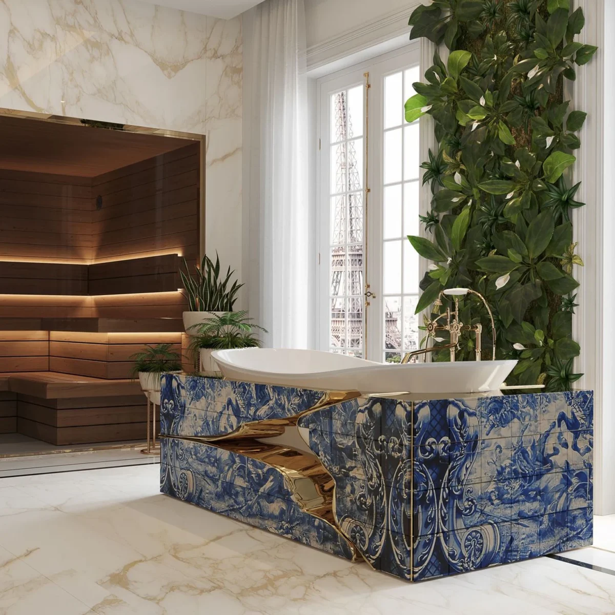 W pawilonie 15 kolektyw prezentuje wielofunkcyjne centrum projektowe, które pokazuje możliwości kompleksowego wyposażenia wnętrz. Boca do Lobo przygotowało aranżację apartamentu z jedną sypialnią, w której łazienka – zaprojektowana przez Maison Valentina – obejmuje m.in. umywalkę Eden oraz wannę Heritage wykończoną ręcznie malowanymi portugalskimi płytkami.